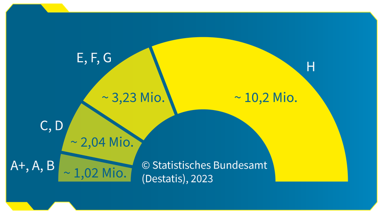 16,5 Mio. Wohngebäude in Deutschland. Davon haben über 60 % die schlechteste Energieeffizienzklasse H.