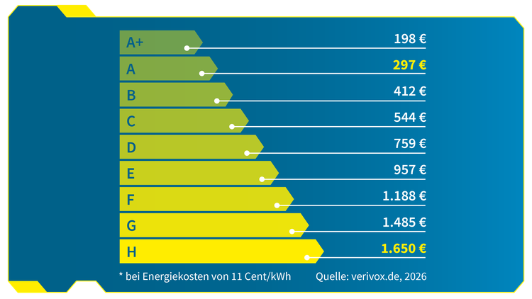 Jährliche Heizkosten nach Energieeffizienzklassen