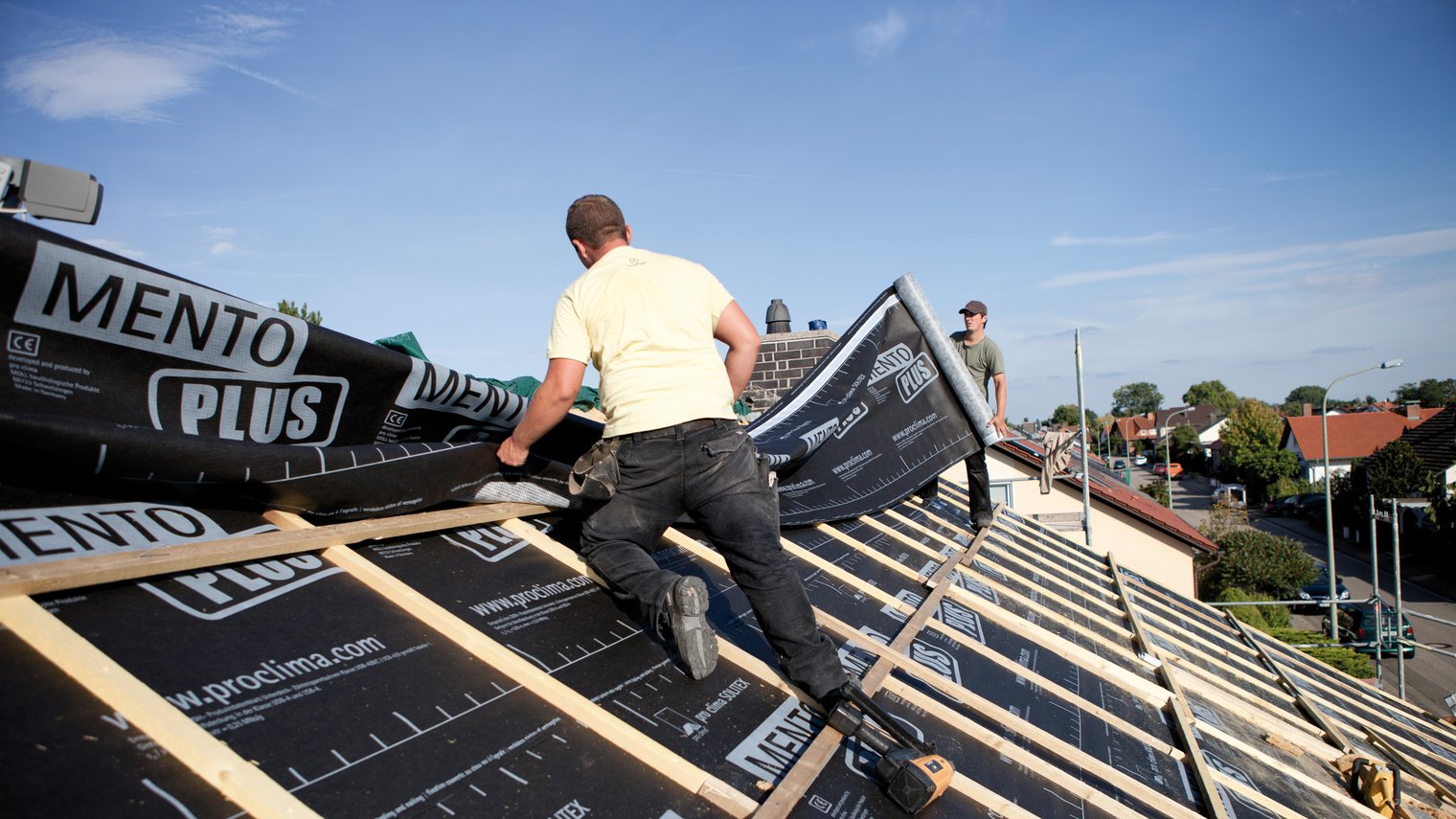 Die Winddichtungsebene schützt den Dämmstoff vor Regen, Schnee und Wind von außen. Zudem sorgt sie dafür, dass die Dämmung nicht von kalter Luft durchströmt wird und somit ihre Leistungsfähigkeit voll entfalten kann.