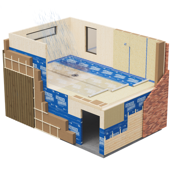 Ermöglicht durch die vollflächige Verklebung einen temporären Bauzeitenschutz auf Zwischendecken von mehrgeschossigen Bauten in CLT- und Holzrahmenbauweise.