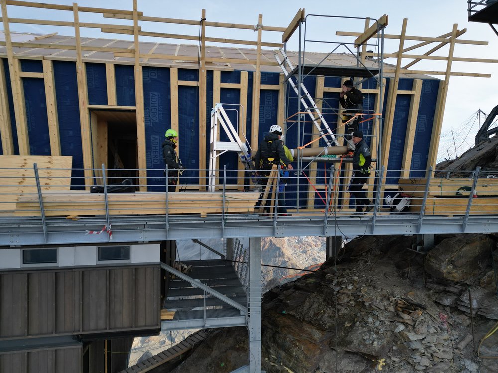 Durch die Höhenlage von ca. 3.830 m und Windgeschwindigkeiten von bis zu 200 km/h herrschten beim Bau ganz besondere Herausforderungen. So waren die Montagefenster für den Aufbau sehr kurz und sämtliche Materialien mussten per Helikopter zur Baustelle transportiert werden. Bei den Arbeiten am steilen Fels in hochalpiner Umgebung entscheidet jedes Detail über Dauerhaftigkeit und Sicherheit.