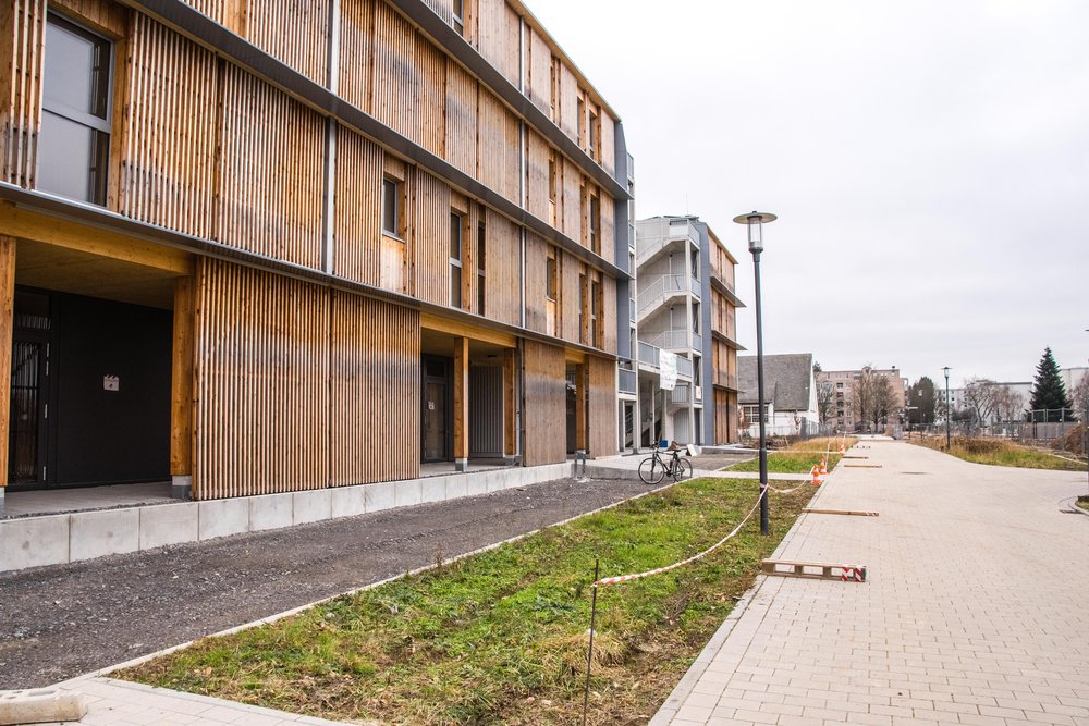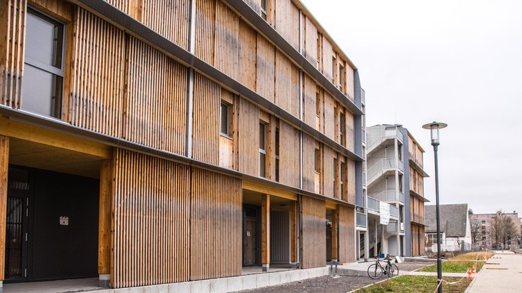 Besonderes Augenmerk lag außerdem auf der ökologischen Bauweise. Das Projekt wurde weitgehend CO₂-neutral umgesetzt und setzt konsequent auf Holz sowie bauökologische Materialien. In Kombination mit durchdachter Luftdichtung und Dämmung verbessert Holz das Raumklima und steigert die Energieeffizienz. Die rund 30-köpfige Projektgruppe entschied sich daher für über zehn pro clima Lösungen, um Bauschäden zu vermeiden und die Lebensdauer der Gebäude zu verlängern. Gleichzeitig erzielen sie regelmäßig Bestnoten in unabhängigen Schadstoffprüfungen und tragen so zu einer gesunden Innenraumluft bei – ein wichtiger Beitrag zu ökologisch verantwortungsvollem Bauen.