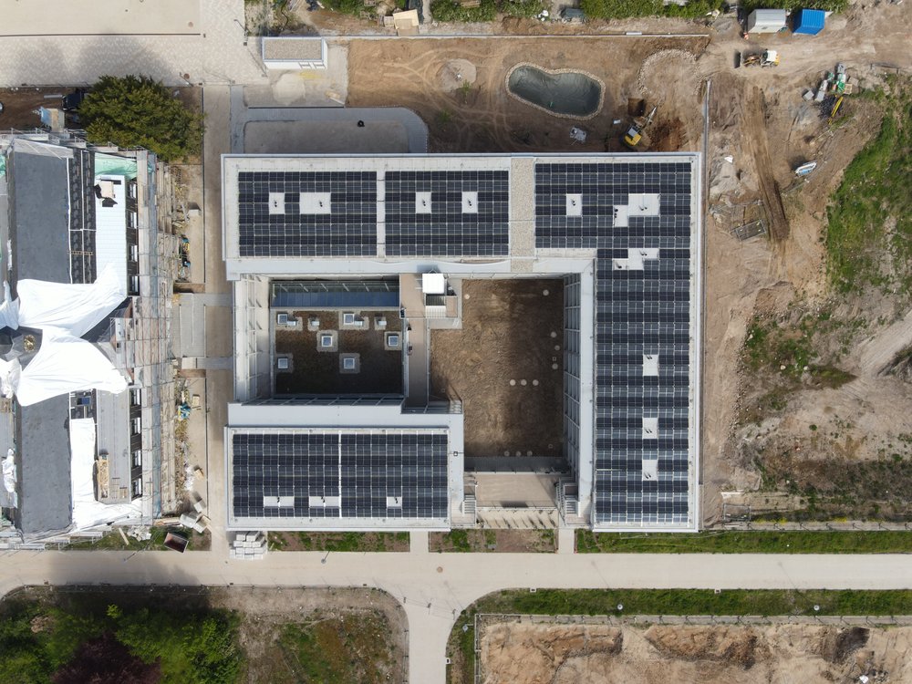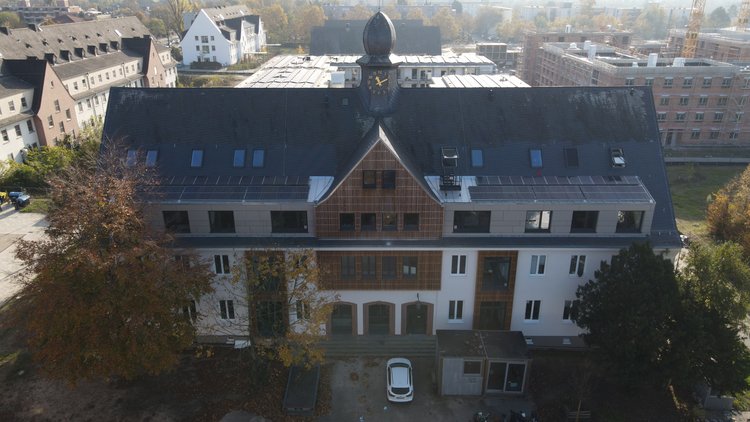 Ansicht auf den fertig sanierten Altbau. Das bestehende Gebäude wurde nicht nur ergänzt, sondern gezielt für eine energieeffiziente und nachhaltige Nutzung weiterentwickelt. Bild © Philipp Garschke